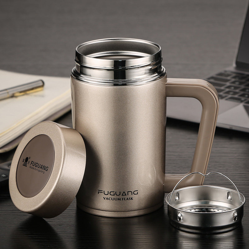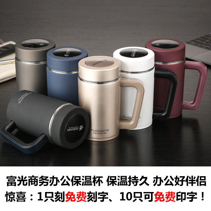Fuguang thermos cup men's and women's office business tea cup with handle stainless steel household portable cup lettering