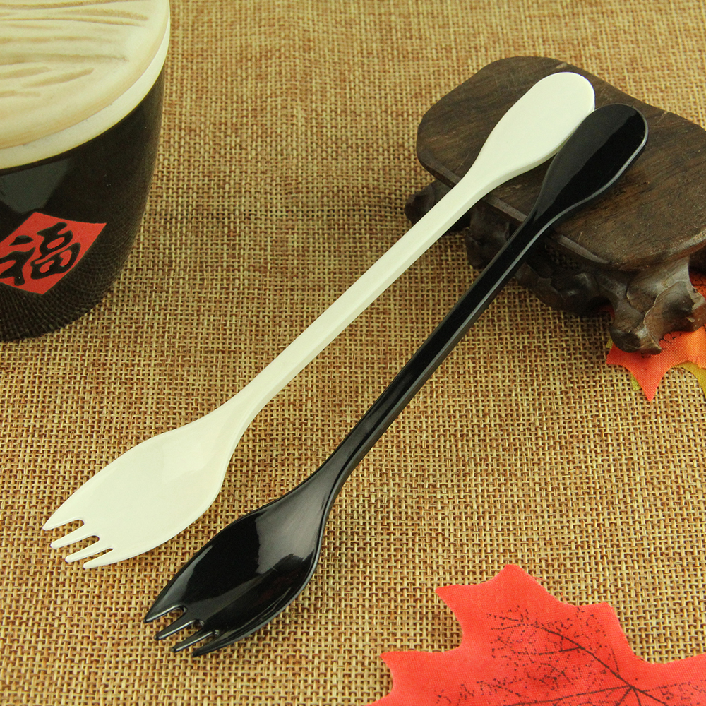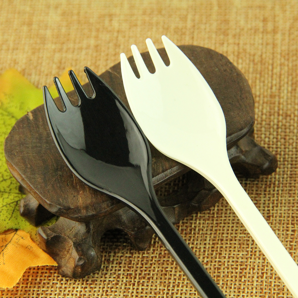 Black dual-use four-tooth fork spoon 100 1 pack dual-use four-tooth fork spoon 500 5 bao mi White dual-use four-tooth fork spoon 100 1 bao mi White dual-use four-tooth fork spoon 500 5 packages