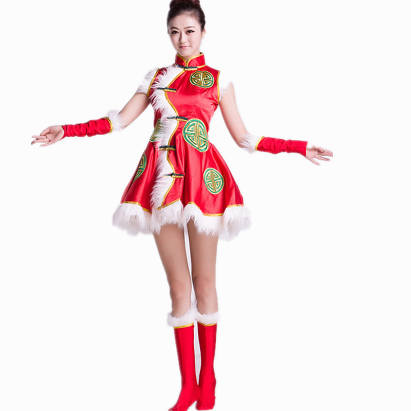 Red Festive Adult Women's Dress Gown Chinese Eva Dance Plays Out The Open Door Red National Seedlings Song Dance Waist Drum Suit