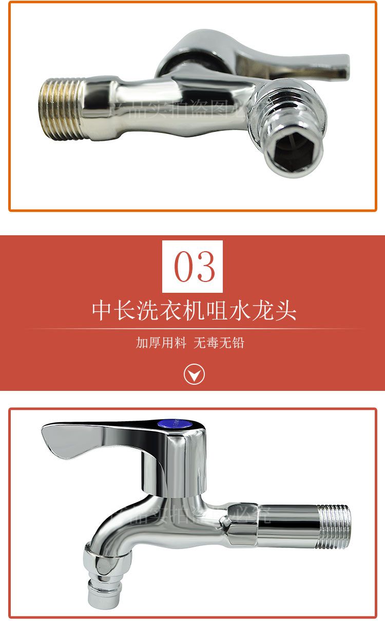 Blue shank plastic tap 1803 flat nozzle tap 1803 washing machine nozzle tap full copper 3 Number of washing machine nozzle tap stainless steel washing machine nozzle tap with long washing machine in the mouth