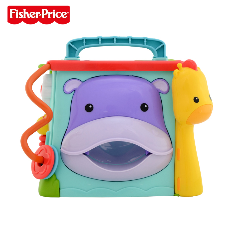 Fisher learning the six-sided box-British bilingual large grain 80 grain building blocks primary color pink six-face box blue seahorse bagged large grain building block 80-pink six-face box tumbler-pink
