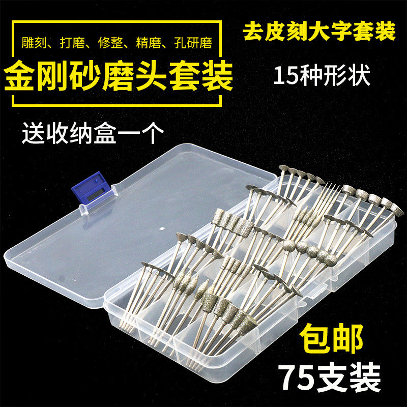 75 pieces of jade carving suit (suitable for peeled lettering) 70 pieces of jade carving suit (suitable for engraving small pieces) 3MM shank grinding head 20 pieces (fine sand) 3MM shank grinding head 20 pieces (coarse sand) 7