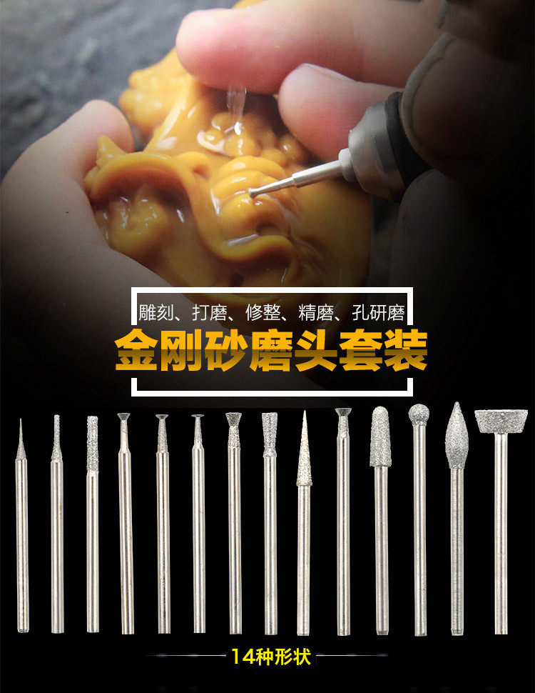Jade carving suit jade engraving grinding needle 70 pieces of diamond grinding head jade carving tool amber honey wax polished 2 35 handle