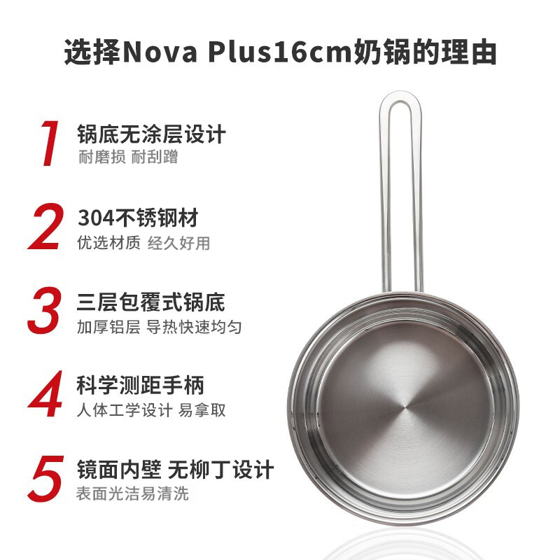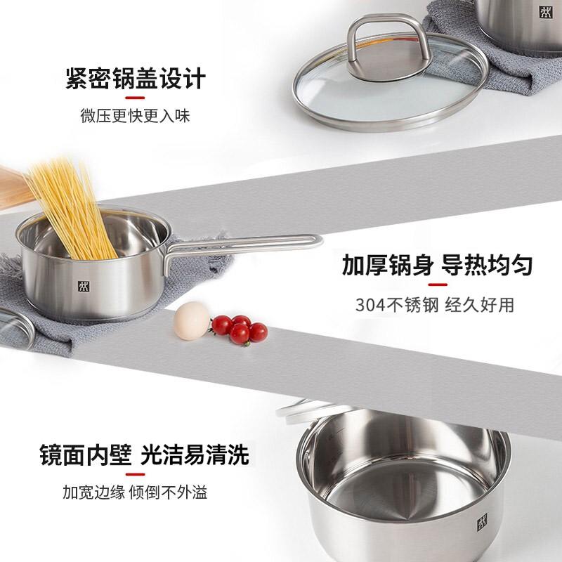 Double Li Pot Kitchen Stainless Steel Mini Cream Accessory Pot Baby Single Handle Household Cooking Pot 16cm
