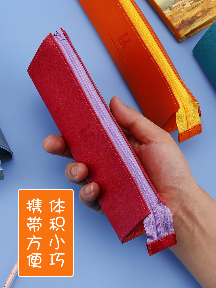 Student Pen Bag Lady Brief Art Small Fresh Pure Color Stationery Bag Creative Triangle Cortex Small Pen Box Teenage Girl Hearts and Japanese Junior High School High School Students Lead Pen Box