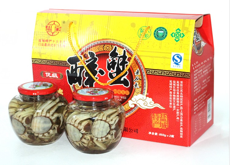 Salt City Large Indulao Drunken Crab 650g x 2 bottles of special production gift box that is the whole mother canned free shipping of crab products