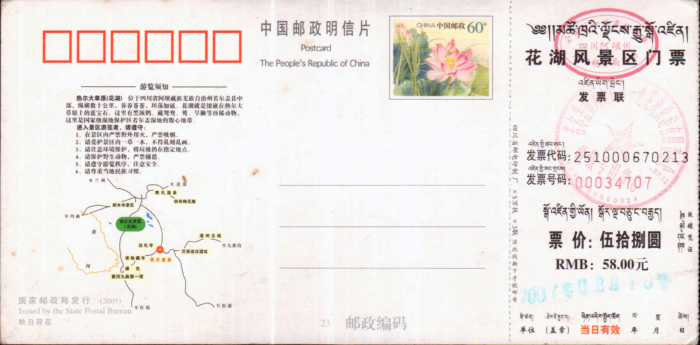 -06 - year release of 60 for Japanese floral postage postcards for 60 years in Sichuan's Aba Joel Gaihua Lake Tourism