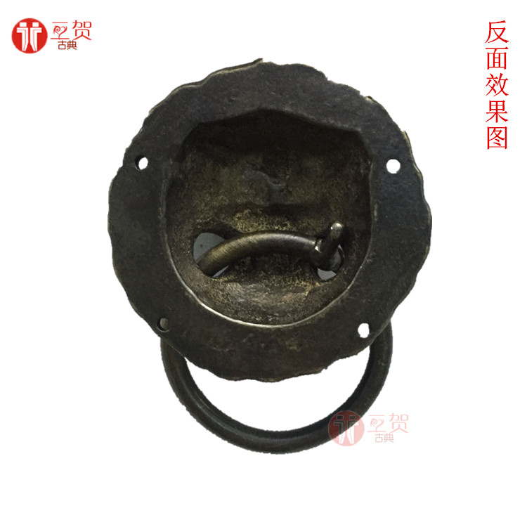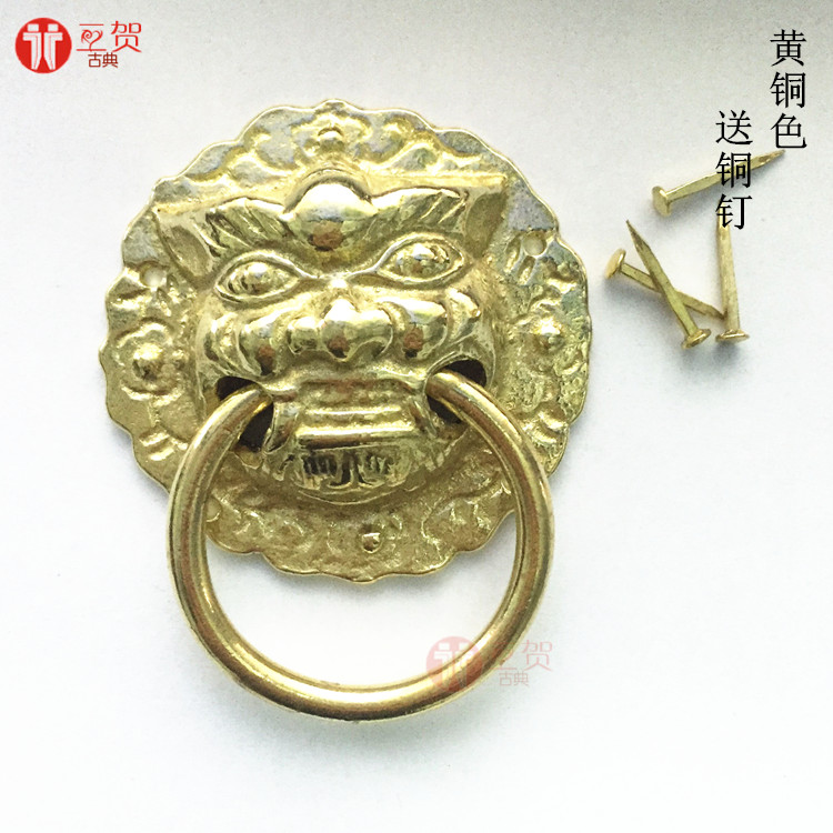 Chinese imitation antique pure bronze beast face casting small lion head handle solid wood door window flower separating fan door handle