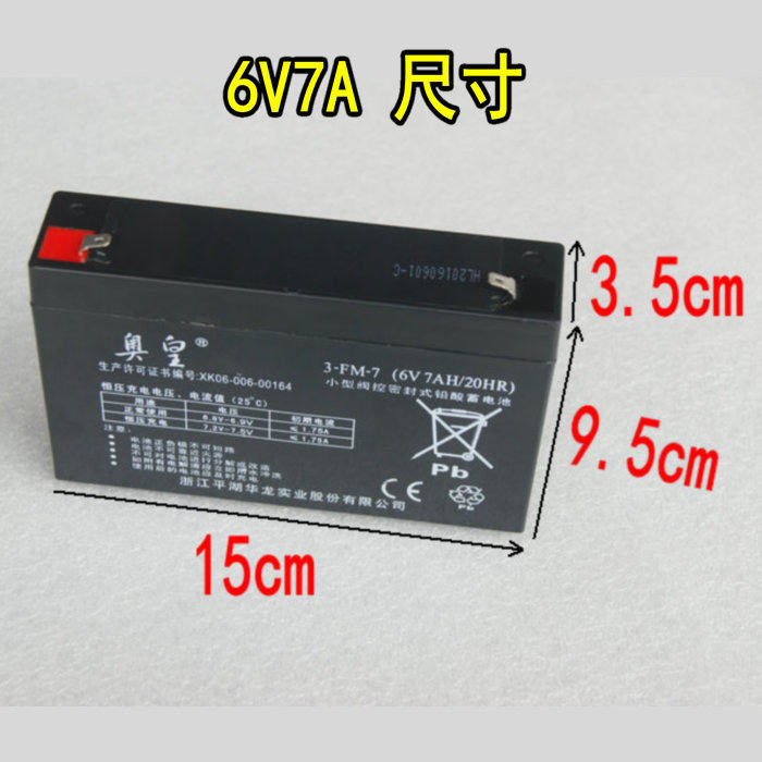 Aohuang 3-FM-7 6V7A Hualong children's electric stroller small valve-controlled sealed lead-acid battery