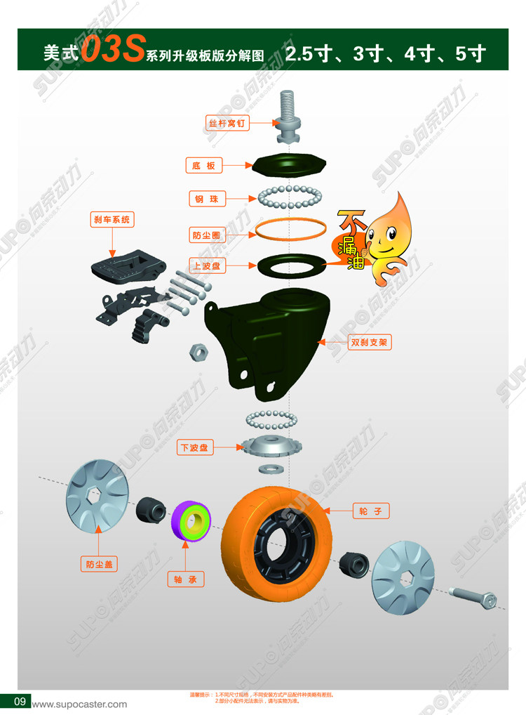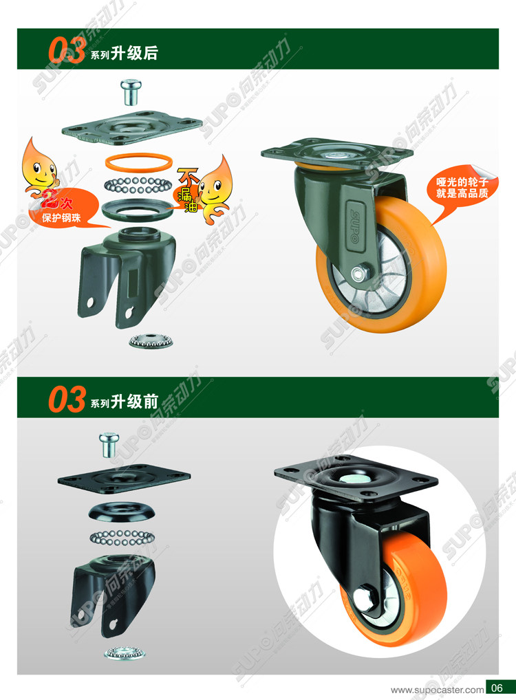 Xiangrong SUPO caster 2 5 inches 3 inches 4 inches 5 inches without brake polyurethane PU mute double bearing industrial universal wheel
