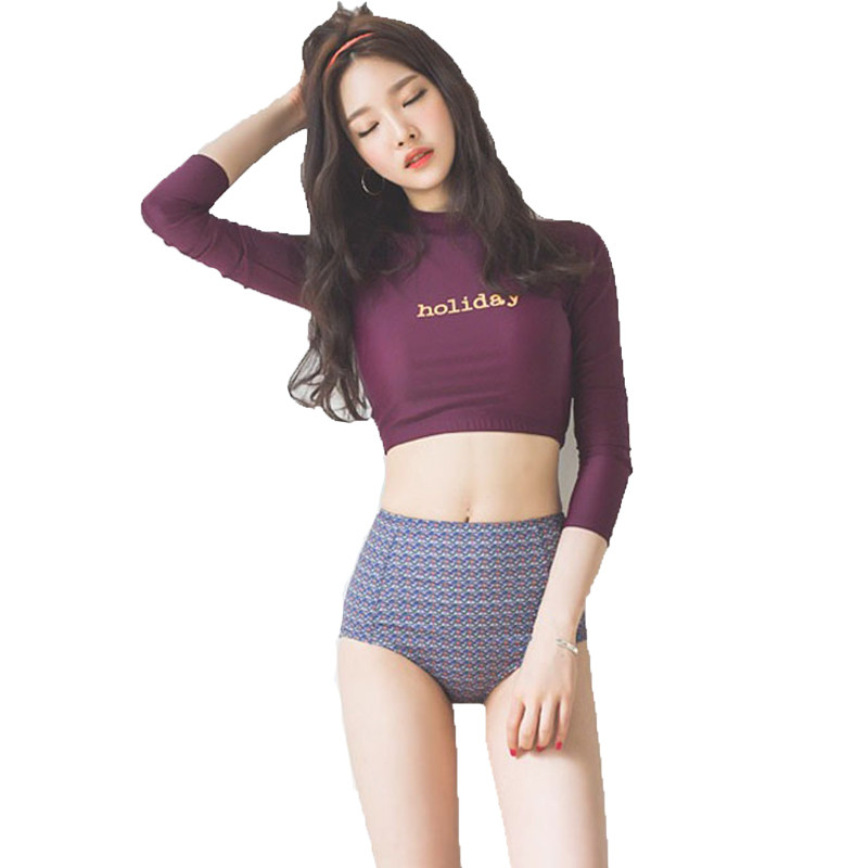 Pink Lady Korea long-sleeved sunscreen wetsuit short high-waisted briefs thin two-piece swimsuit women