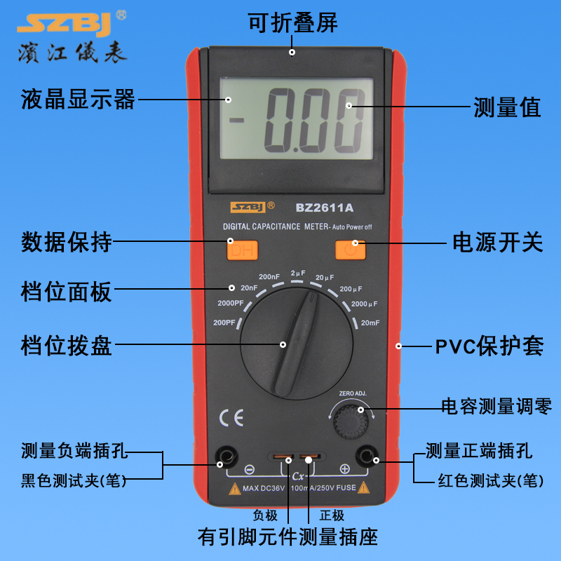 SZBJ Binjiang BZ2611A handheld high-precision fast large capacitance measurement professional digital capacitance meter