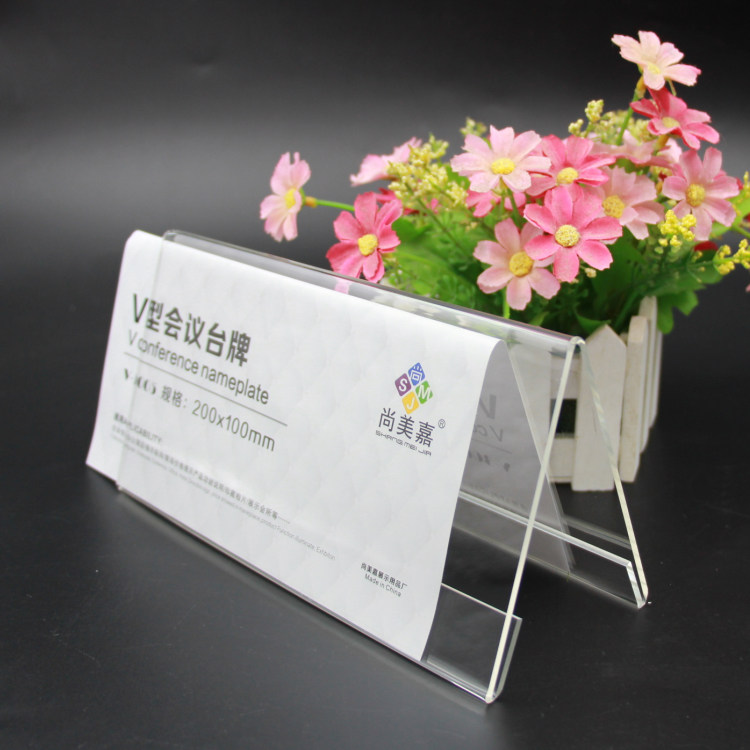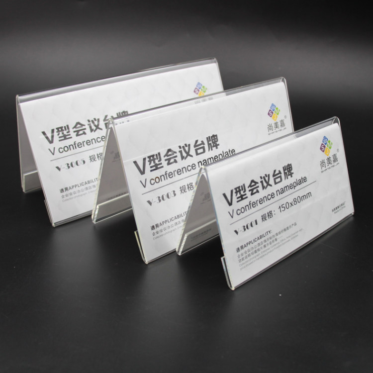 Shangmeijia Triangle Conference Table Card Acrylic V Table Card Organic Glass Table Card 20*10 Table Brand