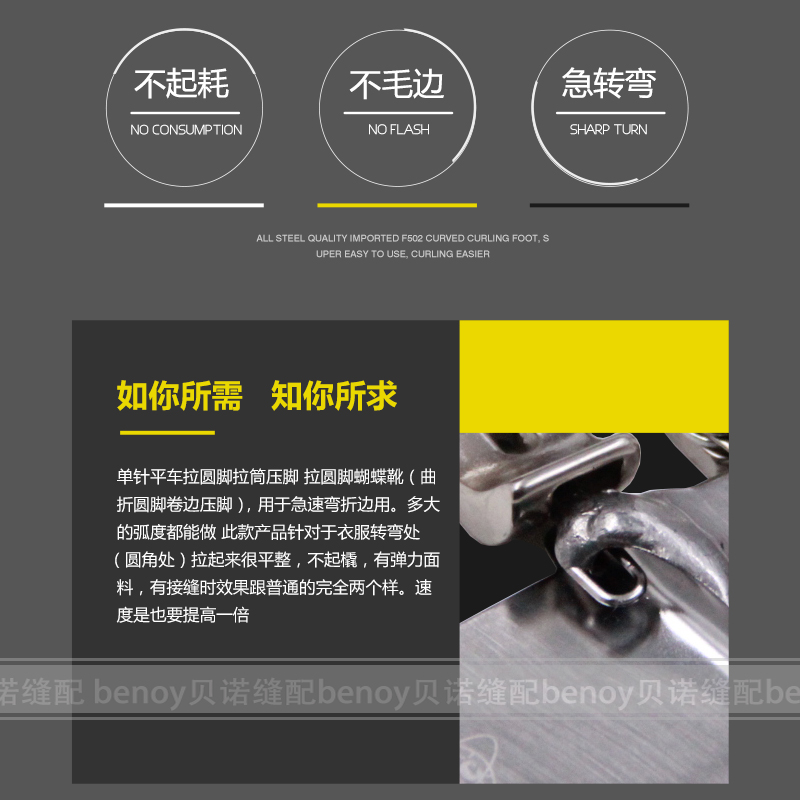 Imported AAA grade all steel F502 curved edge curling device Chiffon silk 0 3 rolling presser foot edging cylinder National
