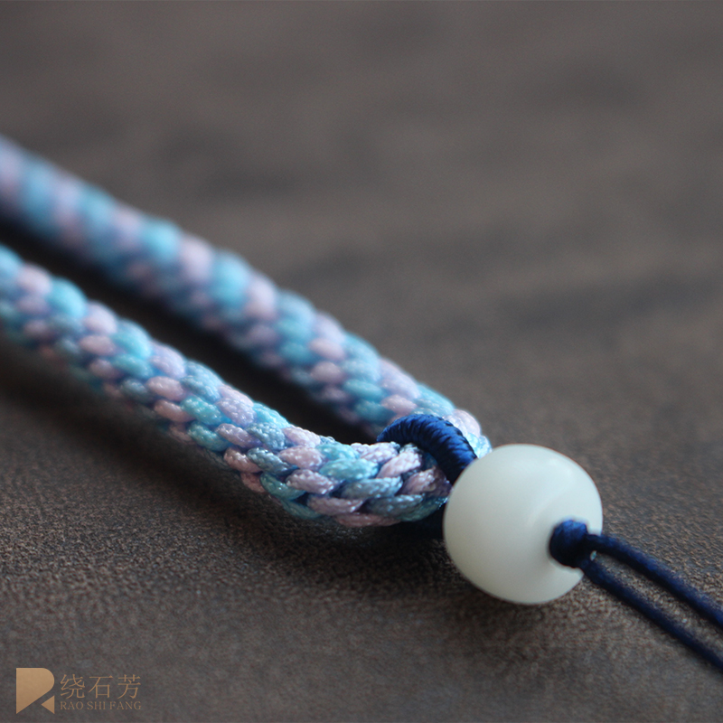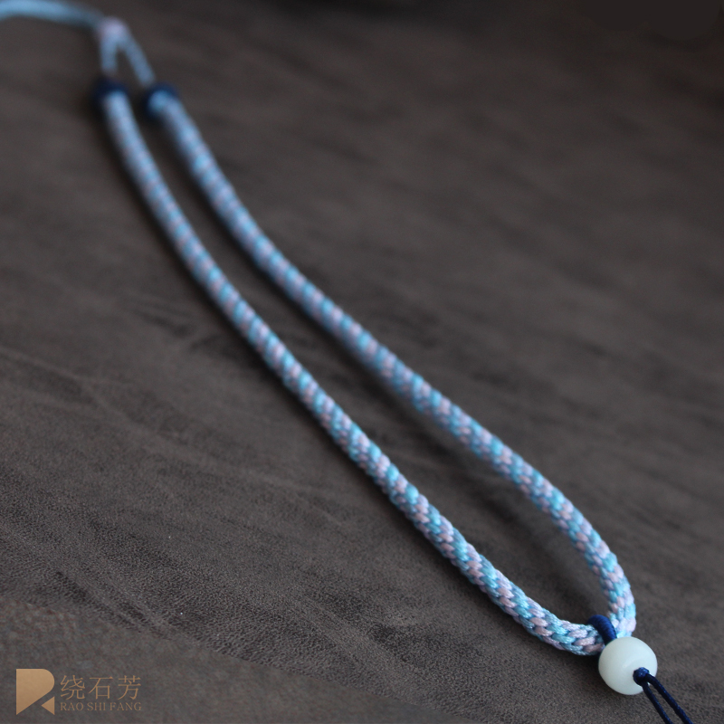 Hand-woven simple and durable light blue and purple gradient fresh literary jade large pendant lanyard thick men's and women's models