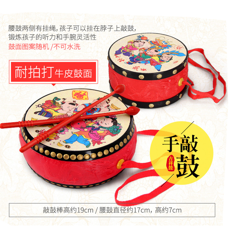 Rattle Baby Toy can bite the traditional vintage wave drum baby hand tambourine 0-1 year old 3-12 months