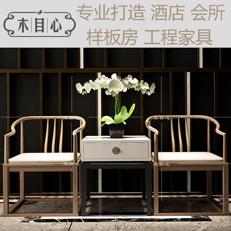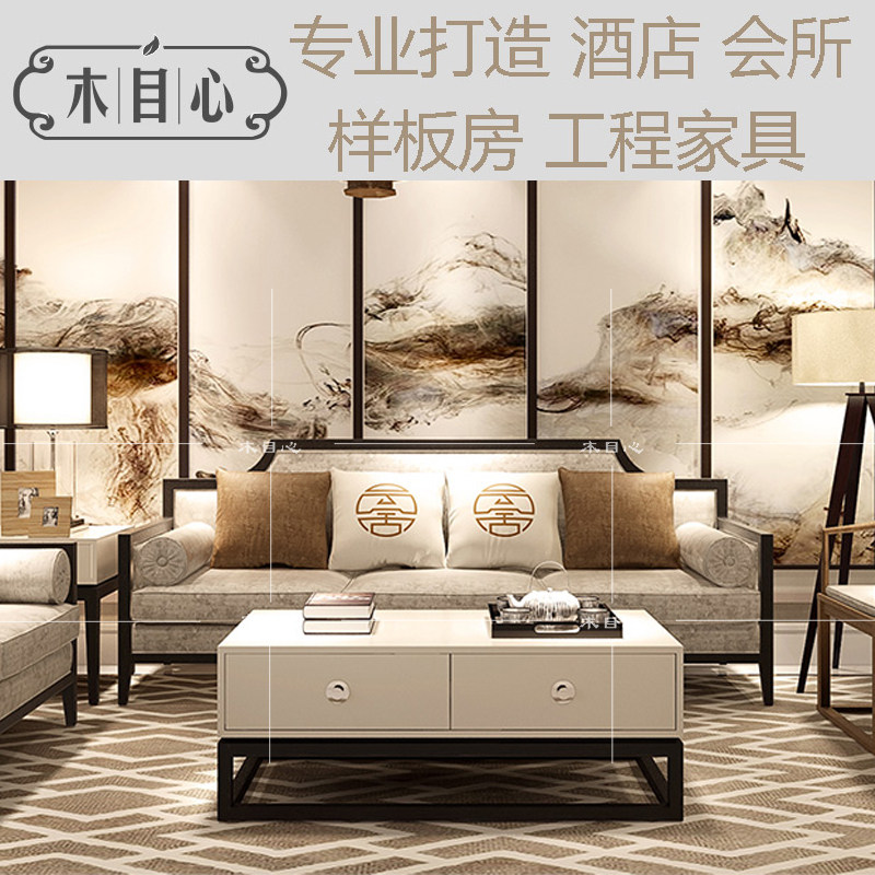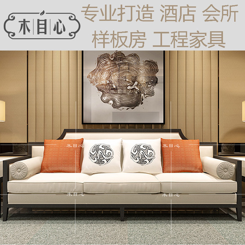 Modern New Chinese Fabric Sofa Combined Hotel Clubhouse Living Room Solid Wood Casual Trio Sofa Bookmaking Furniture