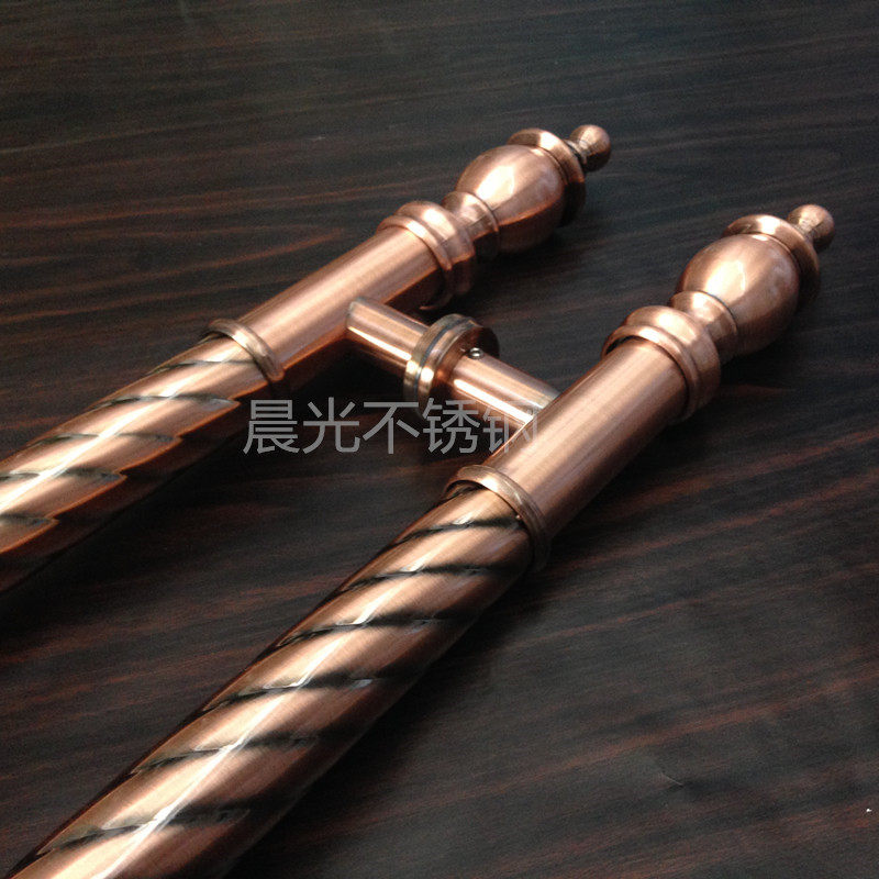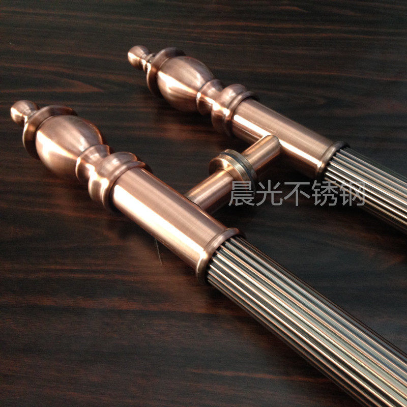 Glass door handheld door wooden door hands red copper thread straight line antique European style large handle stainless steel