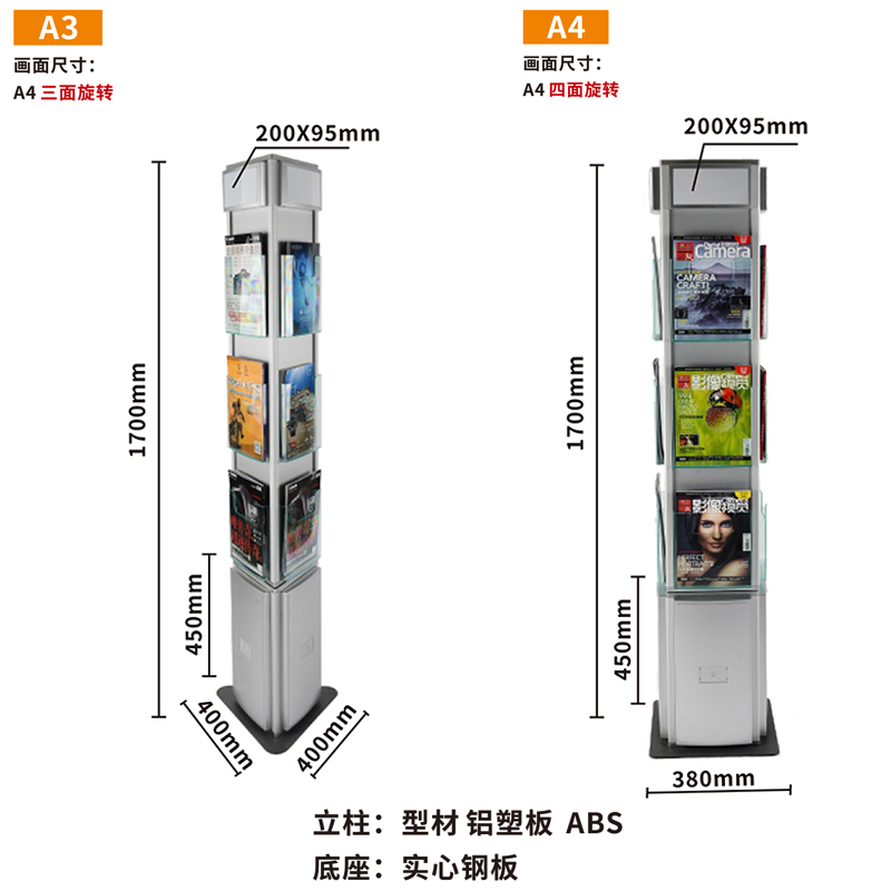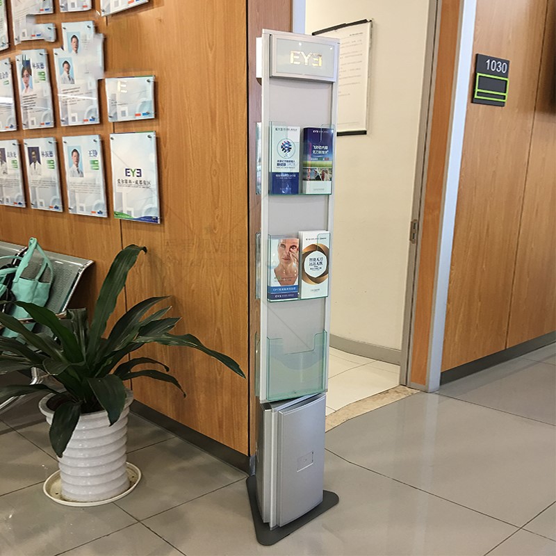 Bank magazine rack Newspaper stand three-sided rotating information rack A4 publicity exhibition stand vertical floor-to-ceiling book rack advertising stand