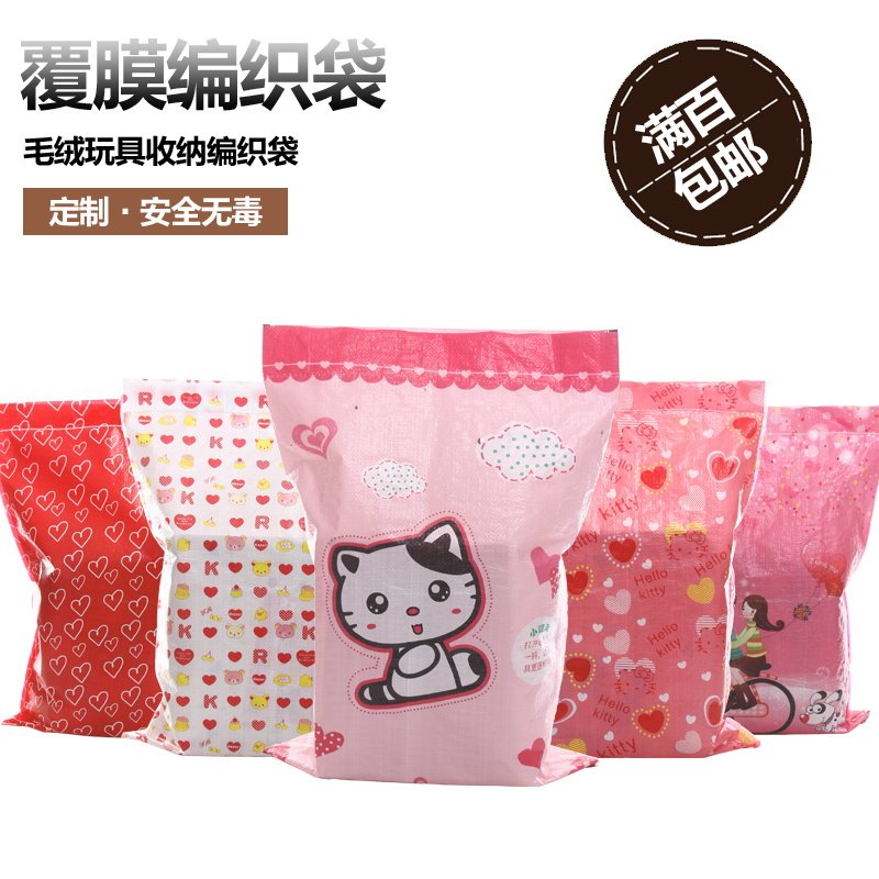 Color coated waterproof woven bag plush toy cartoon gift packaging bag express woven bag factory wholesale