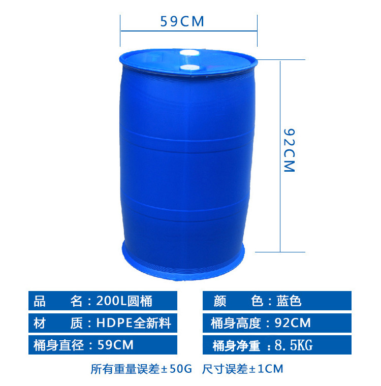 200L Blue Plastic Bucket Bucket Car Wash Barrel Chemical Barrel Oil Barrel Double Ring Barrel Rubber Barrel Closed Barrel Oversize Barrel