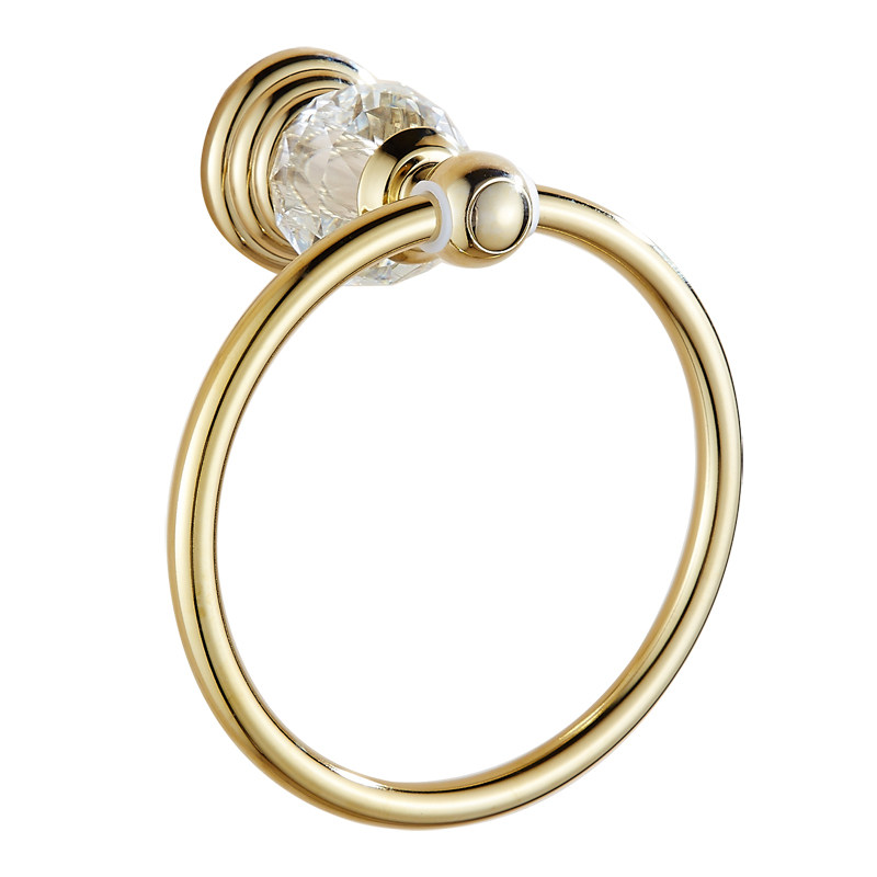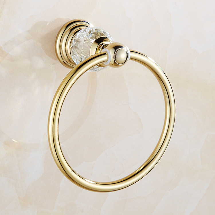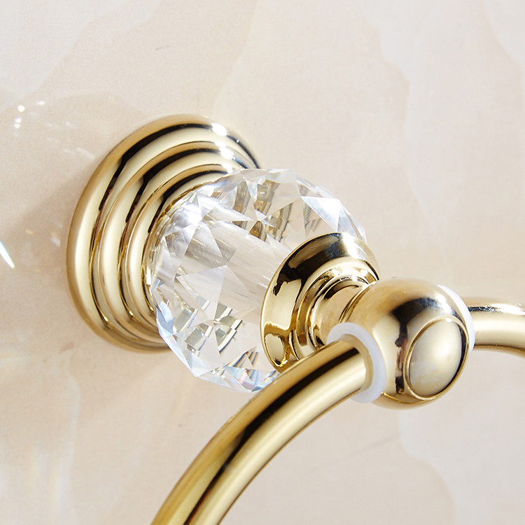 Free punching European style crystal towel ring ring towel rack gold towel ring antique bathroom towel hanging ring nail-free
