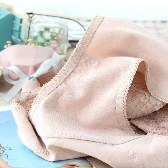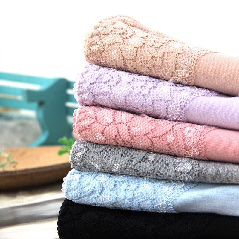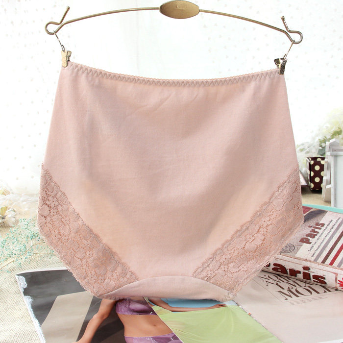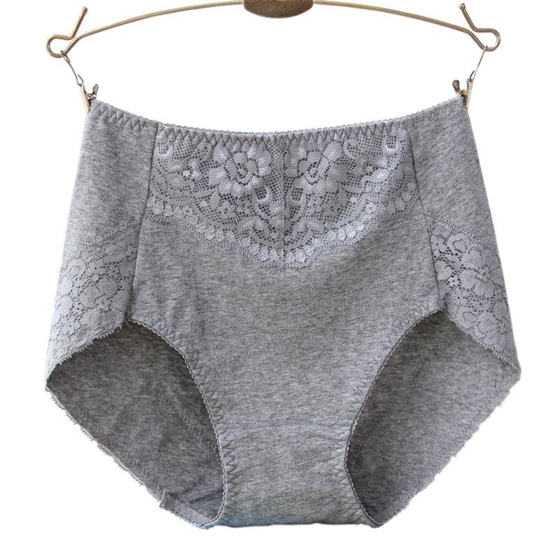 4 articles with high waist underpants female pure cotton crotch Hip Breathable Cotton fabric No Mark Lace Big Size size Triangle pants pure color