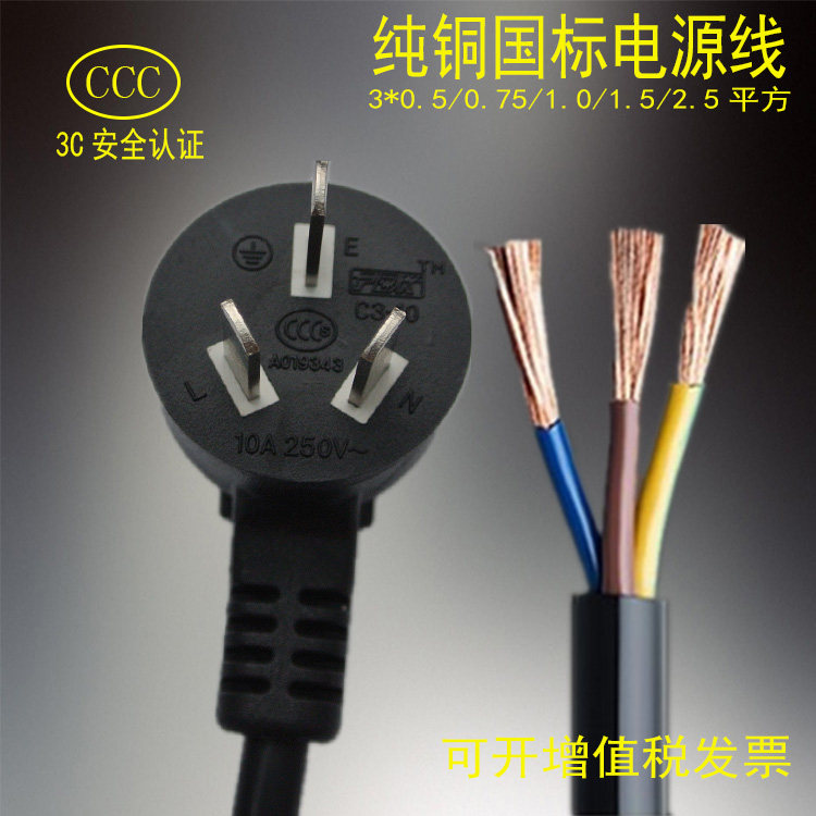 Pure copper national standard 3C certified three holes 0-75 square computer electric cooker electric fan character tail double head power cord
