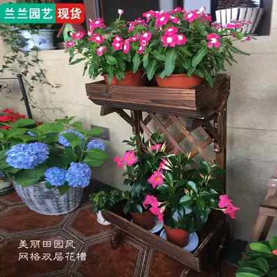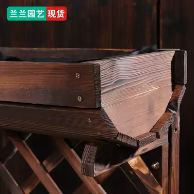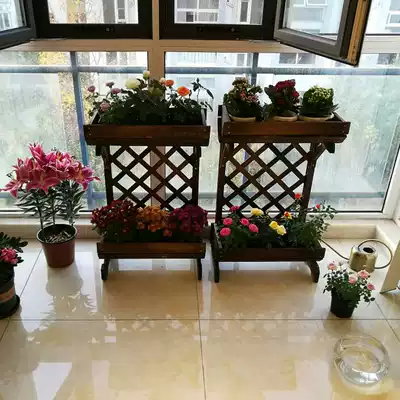 Anti-corrosion wood flower pot rack grid flower trough partition flower rack Dining room flower fence storage shelf Balcony flower box floor-to-ceiling outdoor