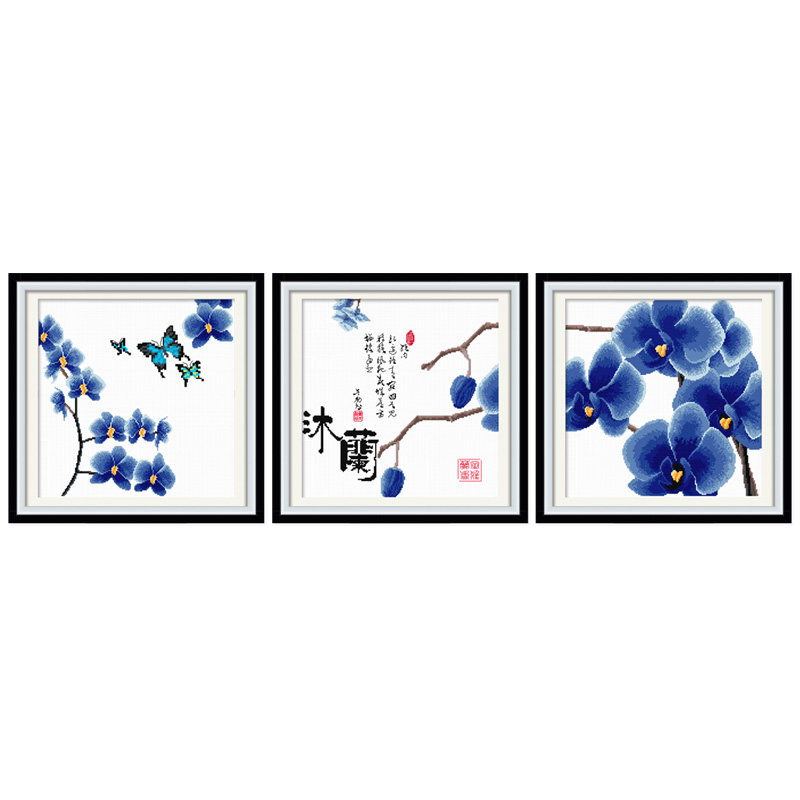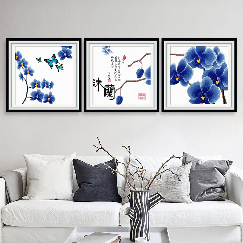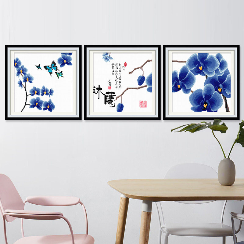 Cross stitch large triptych of orchid 2021 new line embroider own embroider handmade living room bedroom small simple embroider