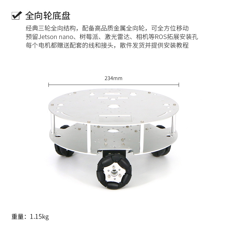 High-quality omnidirectional wheel chassis aluminum alloy double layer frame high-precision encoder giving film tutorial