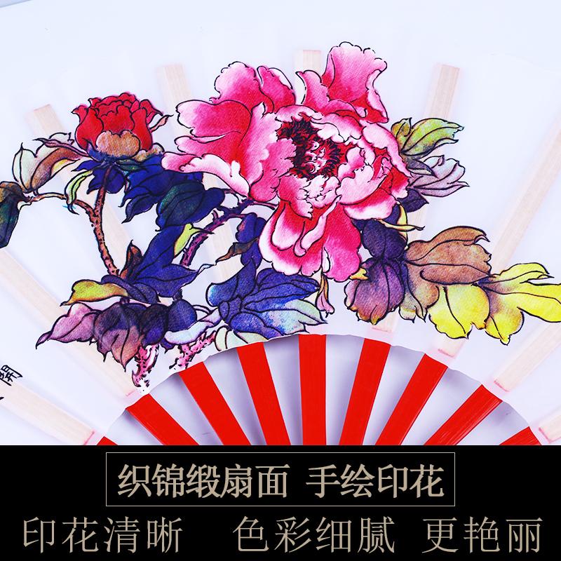 Red bone white face peony (32cm fan bone) Red bone gold face peony (32cm fan bone) Red bone red face peony (32cm fan bone) Red bone green face peony (32cm fan bone)
