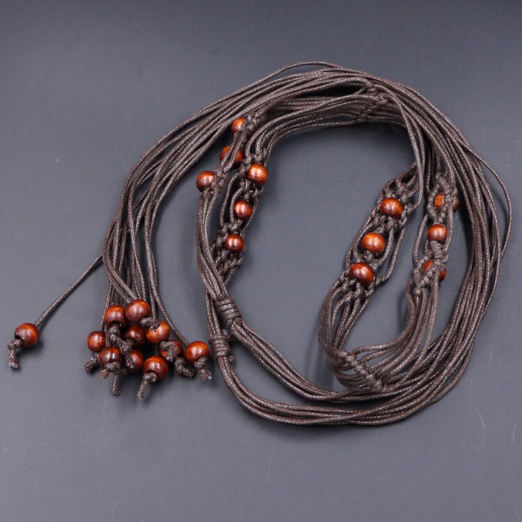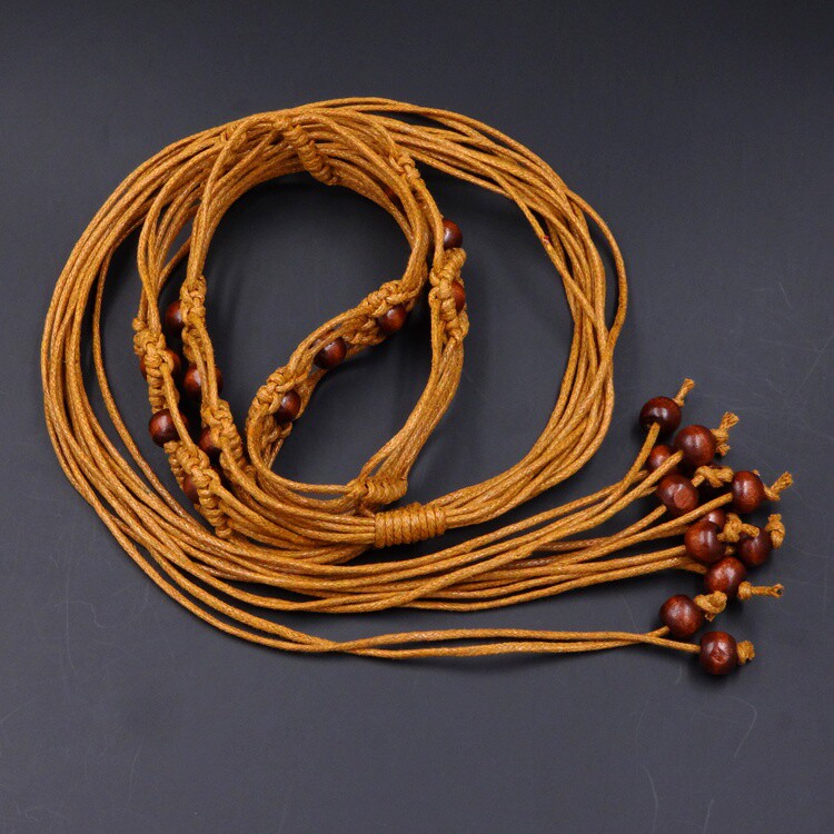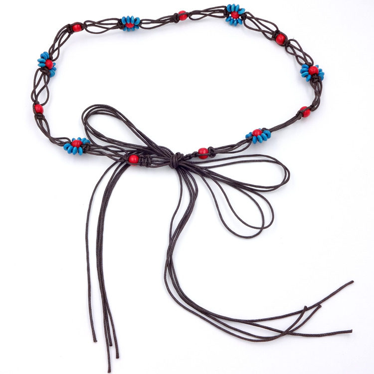 Female bohemian national style decorative thin belt beaded woven tassel bow dress waist refining