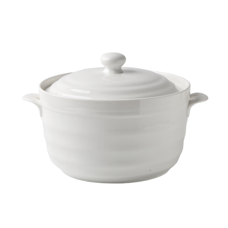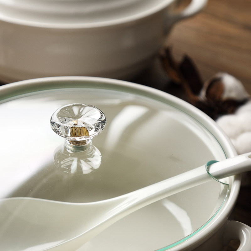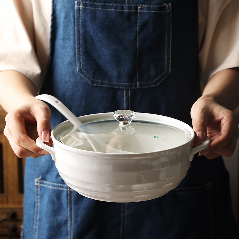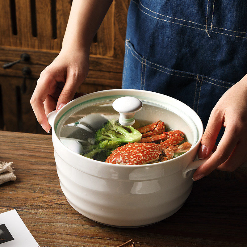 Household Nordic 8-inch double-ear ceramic soup bowl Microwave soup pot with lid Creative large solid color Sheng bowl male