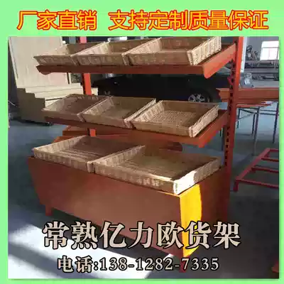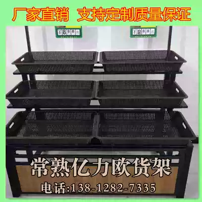 Supermarket steel Wood combined with vegetable rack leaf shelf vegetable rack fruit shop multi-layer wall shelf display rack