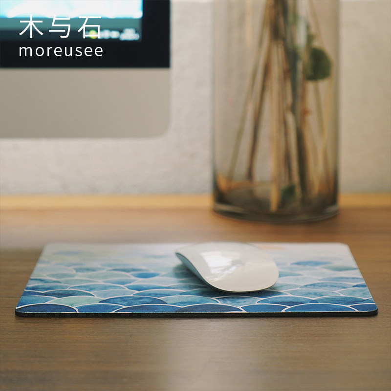 Mouse pad wood and stone original hand-painted mouse pad thickened literary illustration Small fresh mouse pad cute non-slip