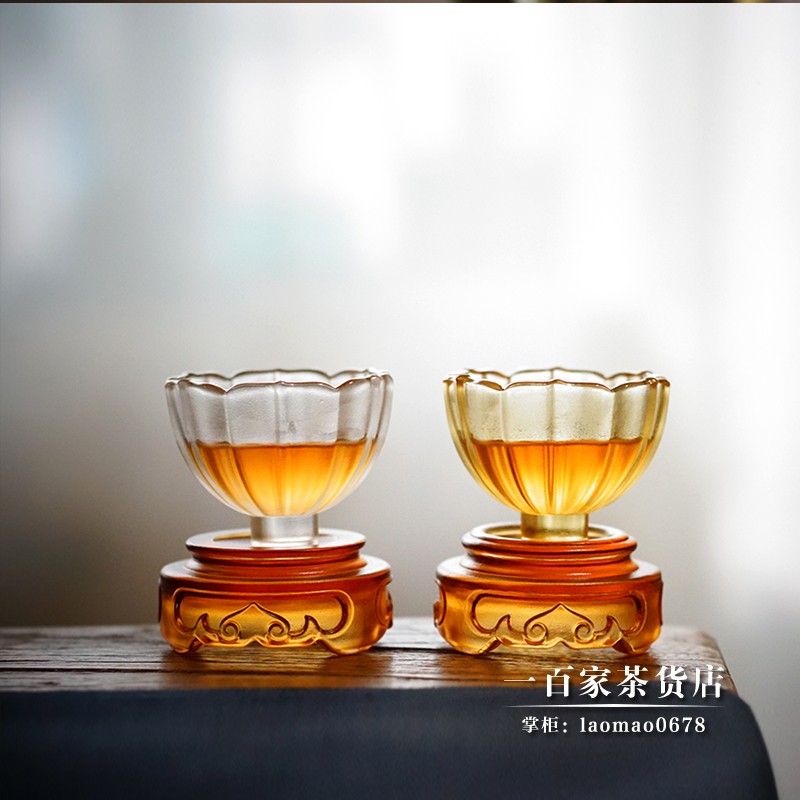 Liang Mingyu Ancient Method Liuli) Huaxin No. 2 Tea Cup Original Design Tea Set White and Gold Two-color Optional