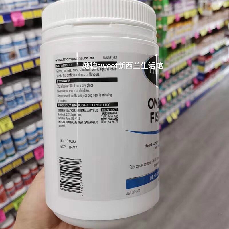 New Zealand direct mail imported Thompsons deep-sea fish oil 400 capsules omega 3 anti-three high