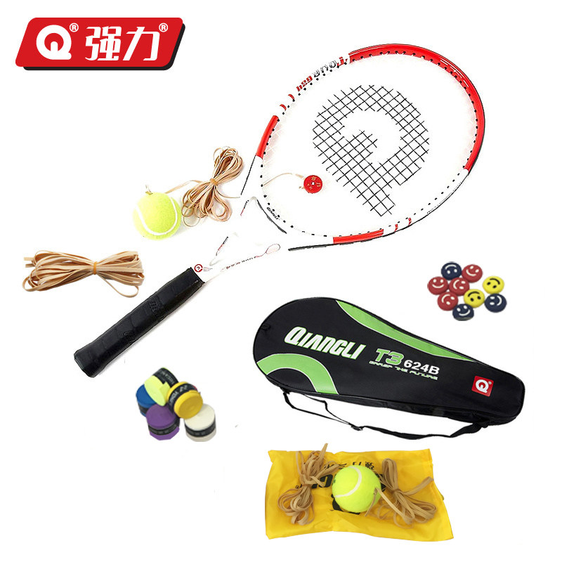 Powerful 624B carbon aluminium integrated forming tennis racket single training beginner base single belt line with ball net racket