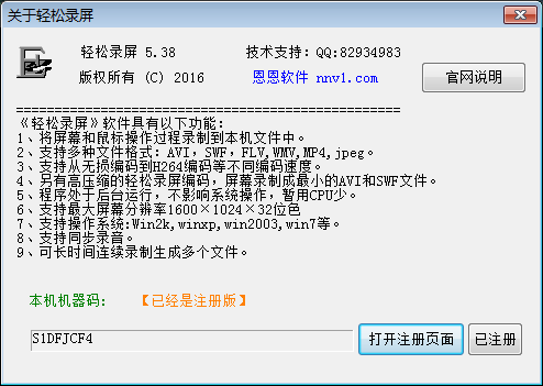 Easy recording of the screen for registration