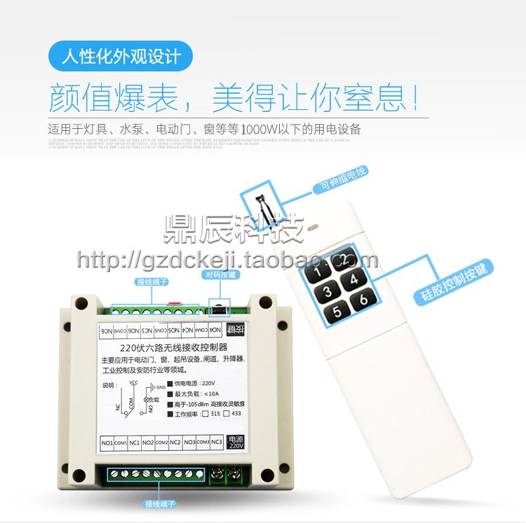High power 3000m 220V6 channel wireless remote control switch lamp water pump motor controller six switch