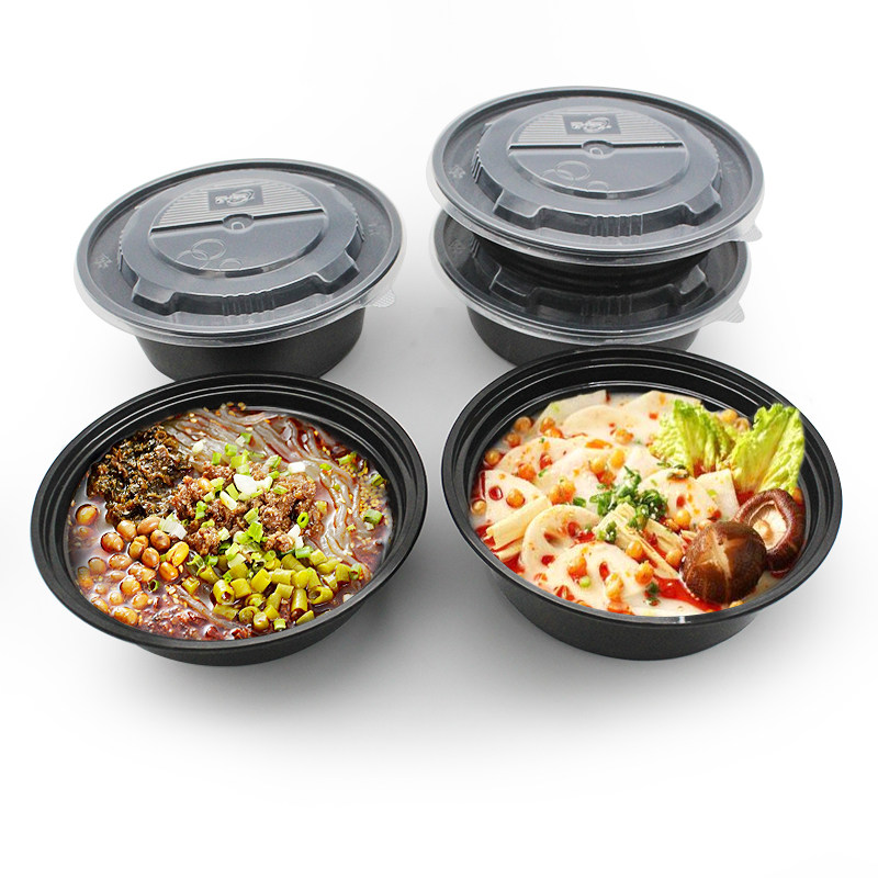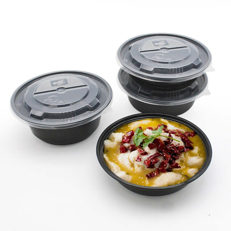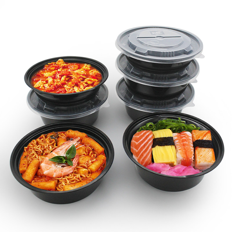 Disposable dining box American round Y900ml black Y700ml Western-style packed box Y450ml out of the planed ice bowl