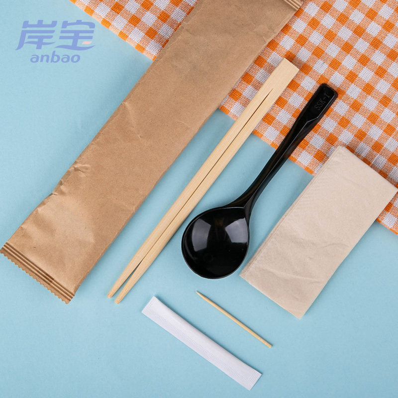 Disposable bamboo chopsticks 100 Double (with toothpick) Four sets-transparent matte film 100 only black spoons of four pieces-transparent matte film 100 white spoons of four pieces-kraft paper 100 sets