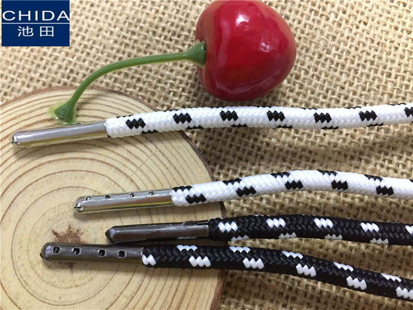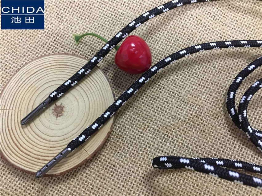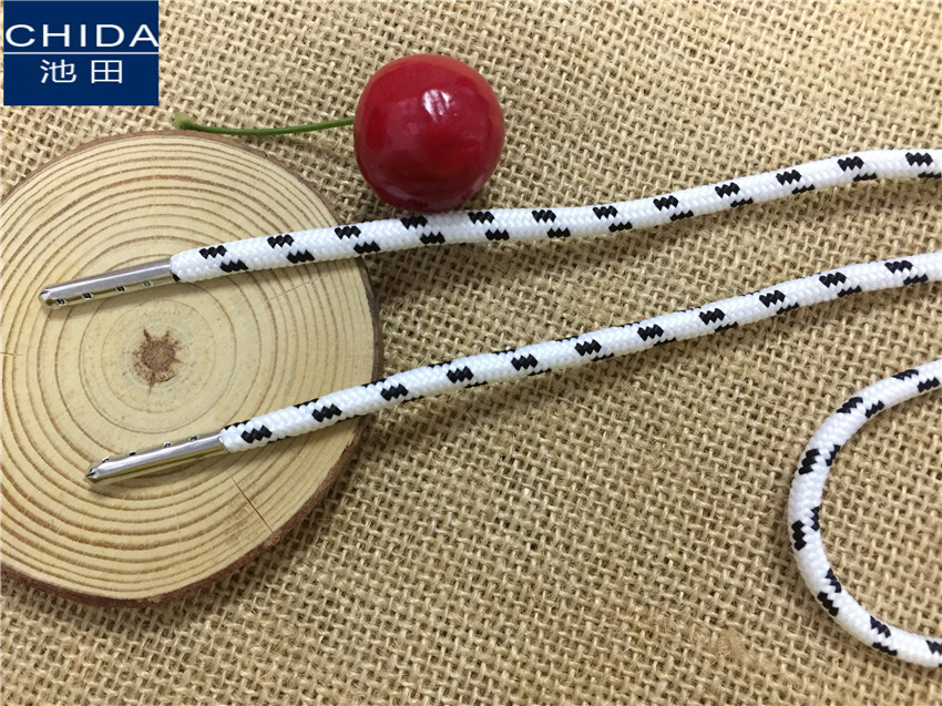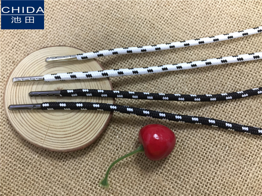 5mm Coarse Polyester Fiber Round Rope Hard Landen Grid Rope Metal Bullet Buckle Baotou Rope Cap Rope Waist Rope Black And White Rope