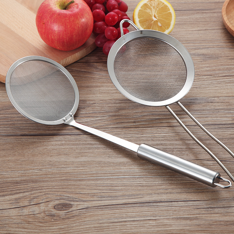 Household ultra-fine colander 304 stainless steel filter screen oil residue removal spoon Kitchen skimmer long handle colander