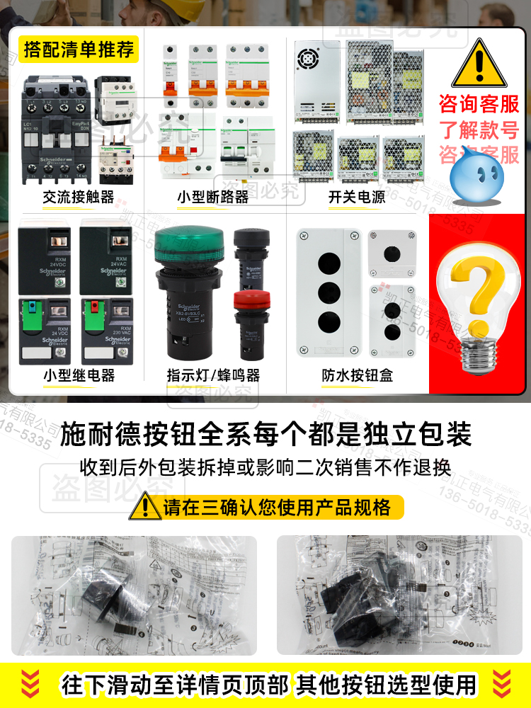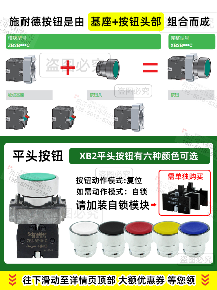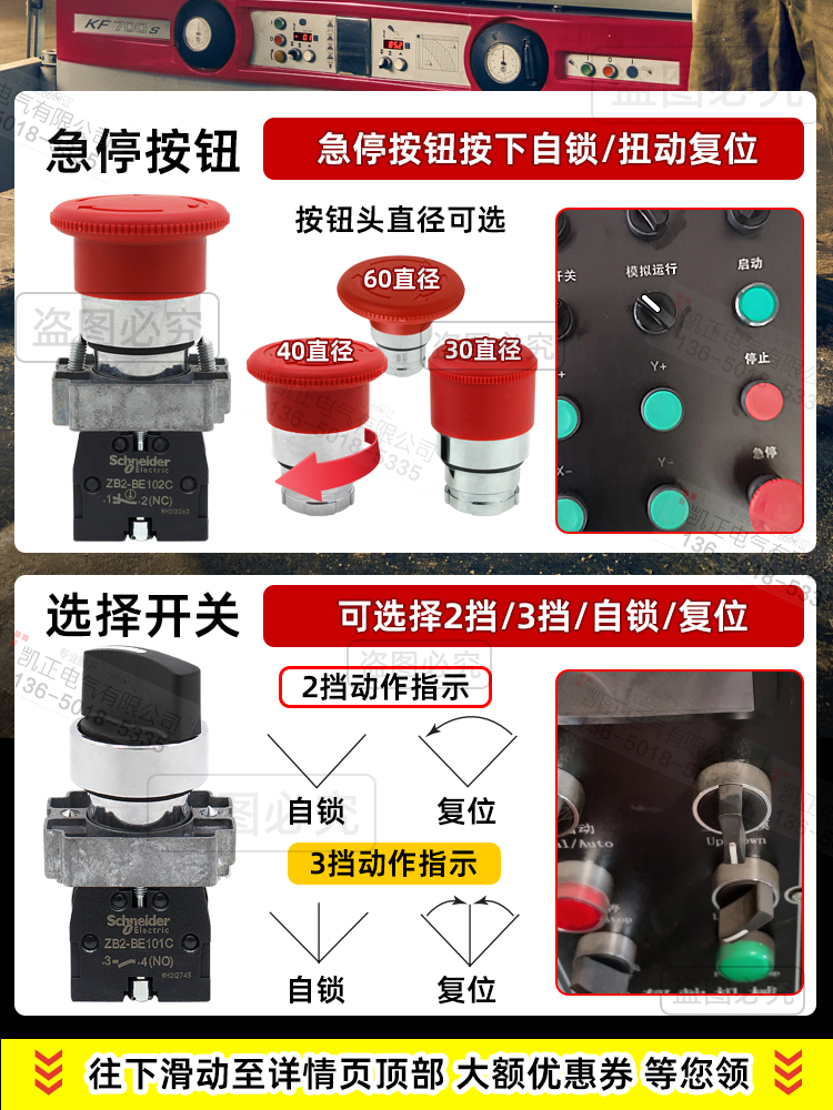 Flat head button emergency stop button mushroom head button 2-speed selection switch 3-speed selection switch flat head button head emergency stop button single head base self-locking module auxiliary contact