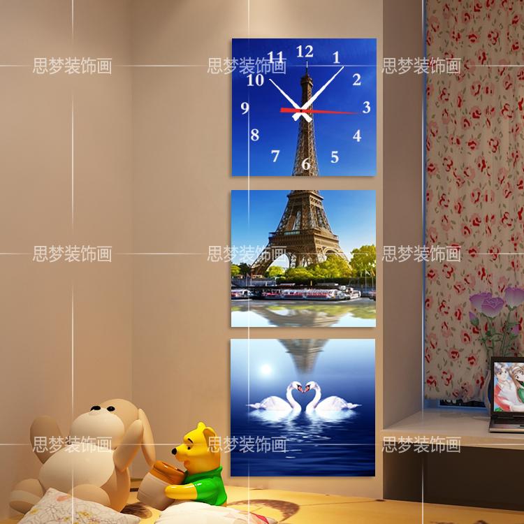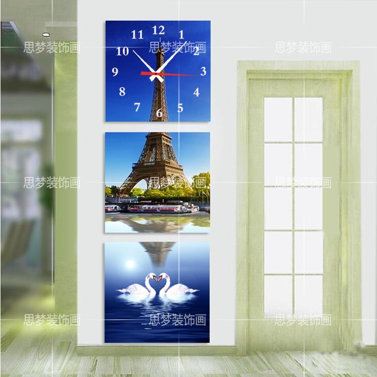 Ice crystal glass frameless painting wall clock Vertical version Eiffel Tower living room decoration painting mural hallway hanging painting