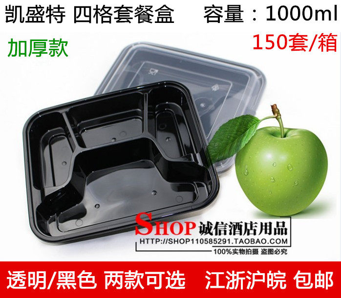 Kesein Disposable Thickening of the Black Quad Packing Box Outside of the box Business package Box transparent Grids Lunch Box