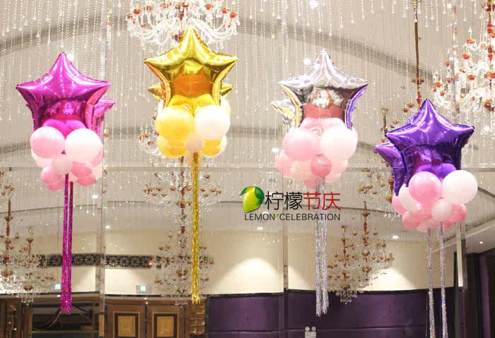 Birthday party wedding mall opening store event floating wedding aluminum film peach heart rain silk star rain silk balloon flower