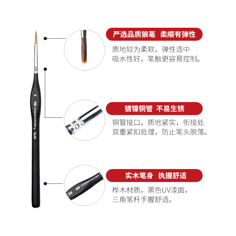 Zhongsheng painting material wolf brush 2710 hook line pen Black rod stroke hook edge pen Painting pen Watercolor pen Watercolor pen
